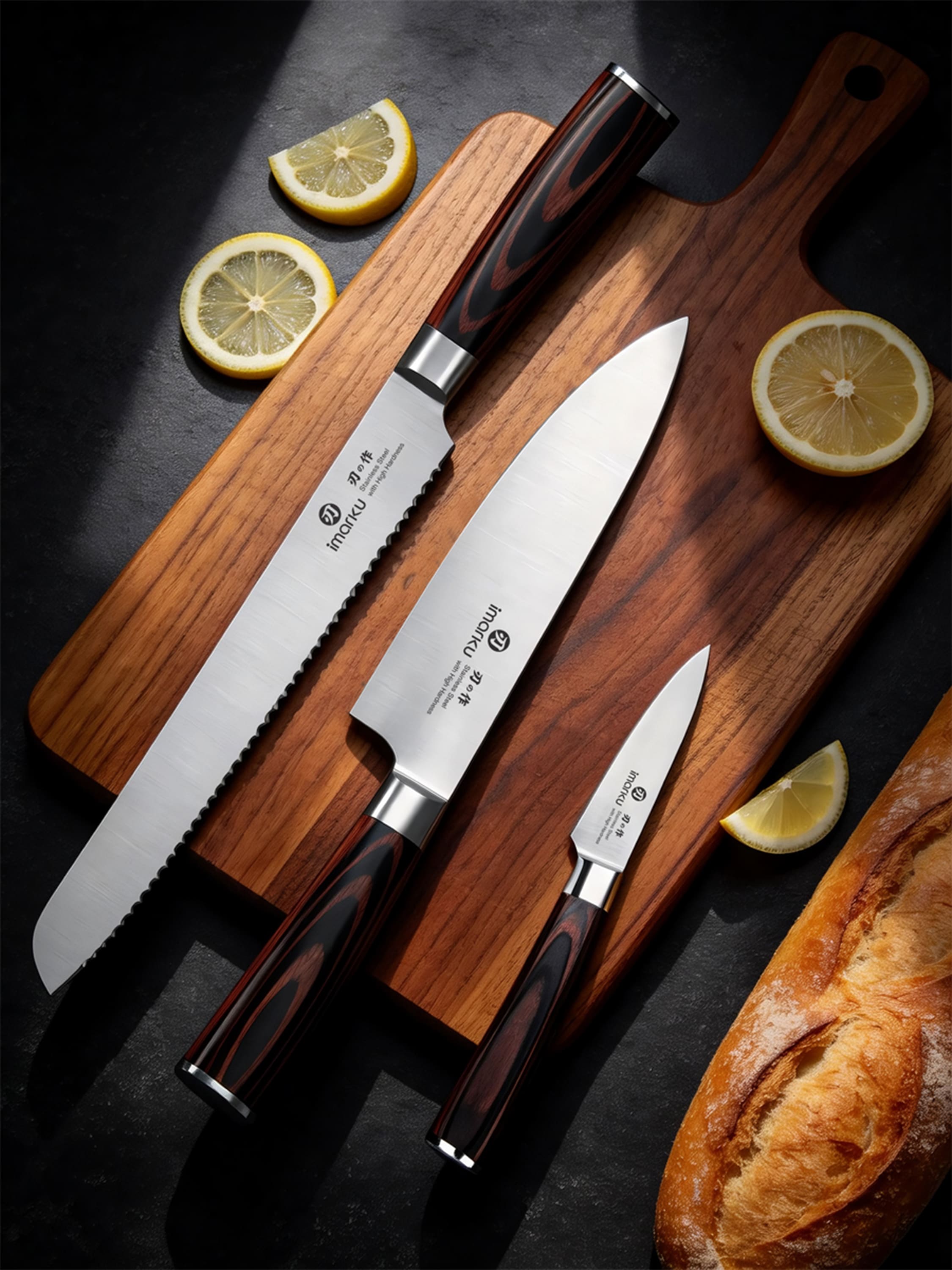Imarku Knife Set is the only set in Logan Hoffman's kitchen. Meticulously designed with a ergonomic handle, heat-treated and crafted for excellent corrosion resistance and sharpness.