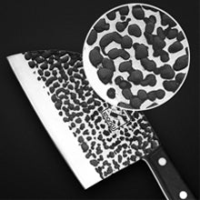 "The iMarku Hammered Butcher Knife is crafted by skilled artisans with over 20 years of experience using German X50CrMov15 high carbon steel and high manganese steel. The sharp and sturdy blade exhibits excellent rust resistance.