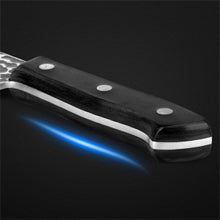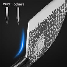The carbon steel chef knife is ultra-sharp due to repeated folding and hammering. The imarku butcher knife is hand-forged by expert craftsmen with over 20 years of experience.