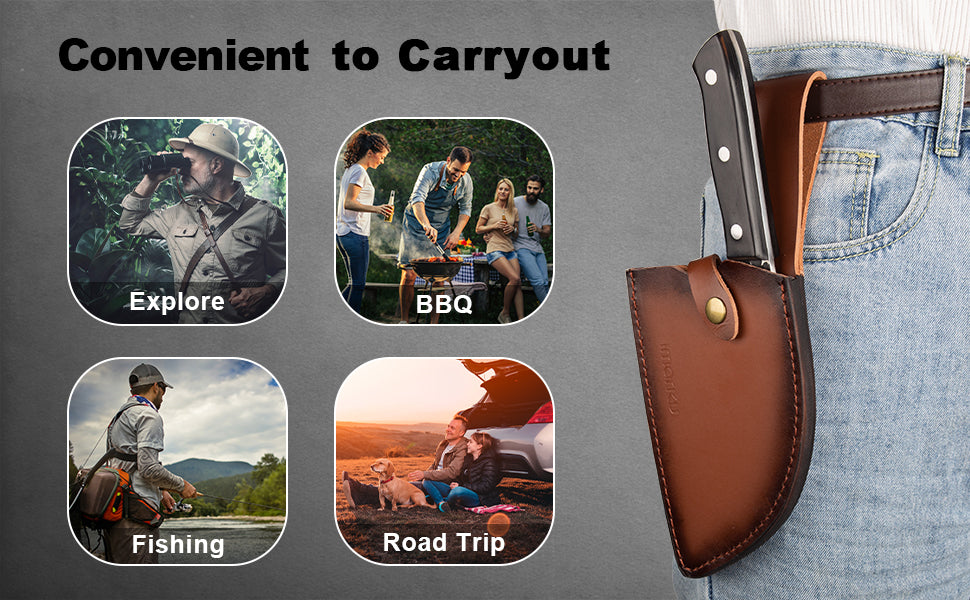 Whether you're exploring the great outdoors, grilling at a BBQ, fishing by the lake, or on a road trip, this knife delivers precision and durability.Its sharp, sturdy blade is perfect for handling tough meats and more, making it an essential companion for any adventure or culinary experience.