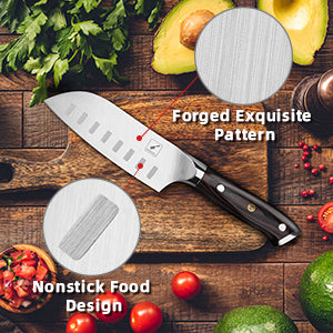 Cooking is a pleasant and interesting experience. Our Santoku knife uses advanced German forging technology and superior materials to prevent the knife from rusting and breaking after use. The super sharp blade suitable for cutting all kinds of fruits, vegetables and meat. And exclusive anti-stick design and comfortable ergonomic handle make cutting easier and simpler. Let you experience the fun of cooking and enjoy delicious meals.
