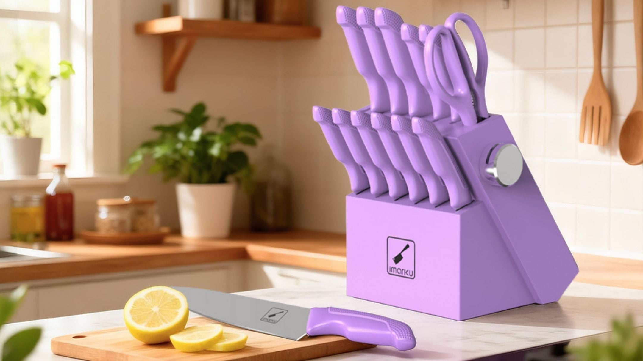 With its colorful purple block, built-in sharpener, and stylish stainless steel knives, this set makes a thoughtful gift for housewarmings, birthdays, or holidays. Practical, elegant, and beginner-friendly, it’s perfect for anyone upgrading their kitchen essentials.