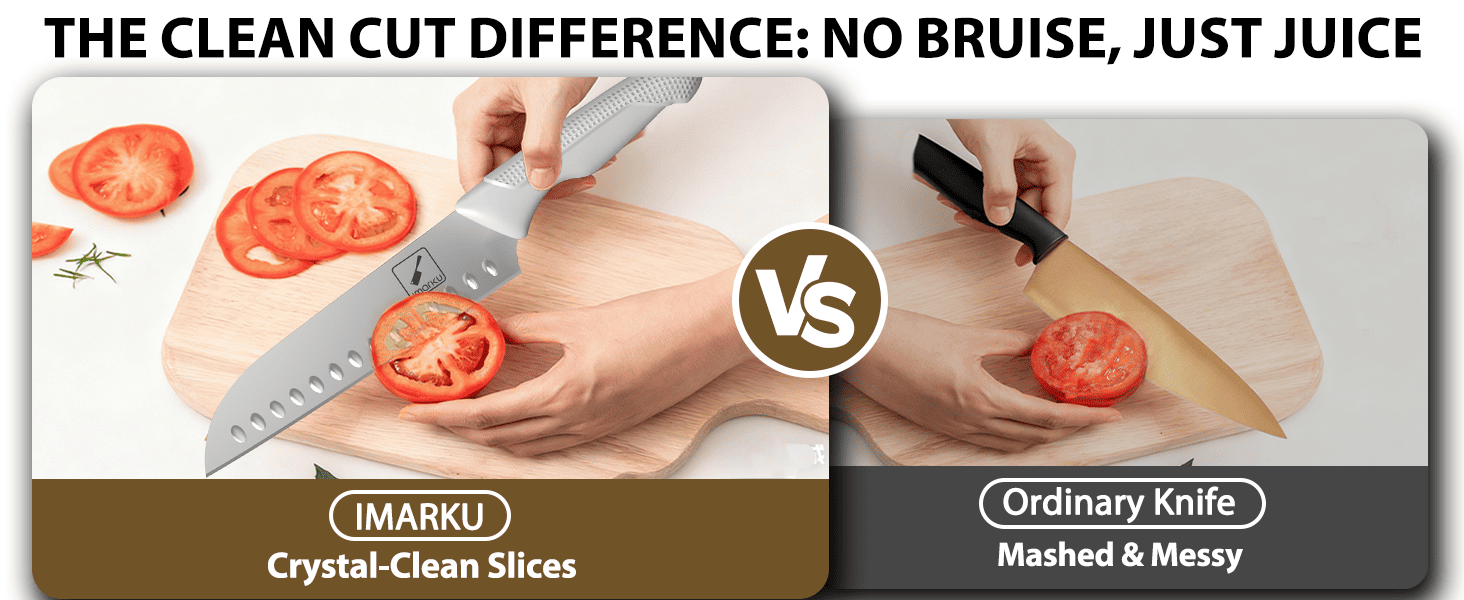 imarku's santoku knife makes meal prep quicker and fun and no longer a tedious and necessary chore.