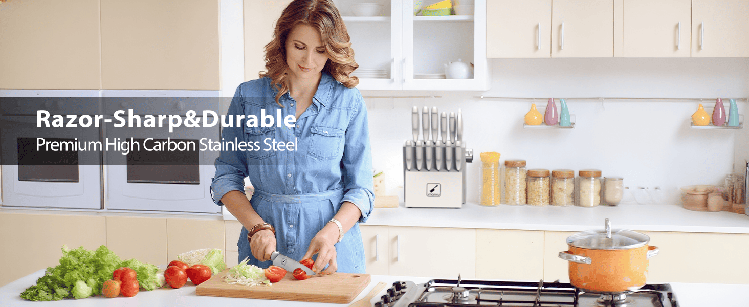 Hassle-Free Warranty & Perfect Gifts: Backed by a 1-year warranty and 3-month free returns, we guarantee your satisfaction. If any issue arises, contact us for a replacement or refund. The knife set with block make it both a stylish and practical, which is one of kitchen essentials for new home